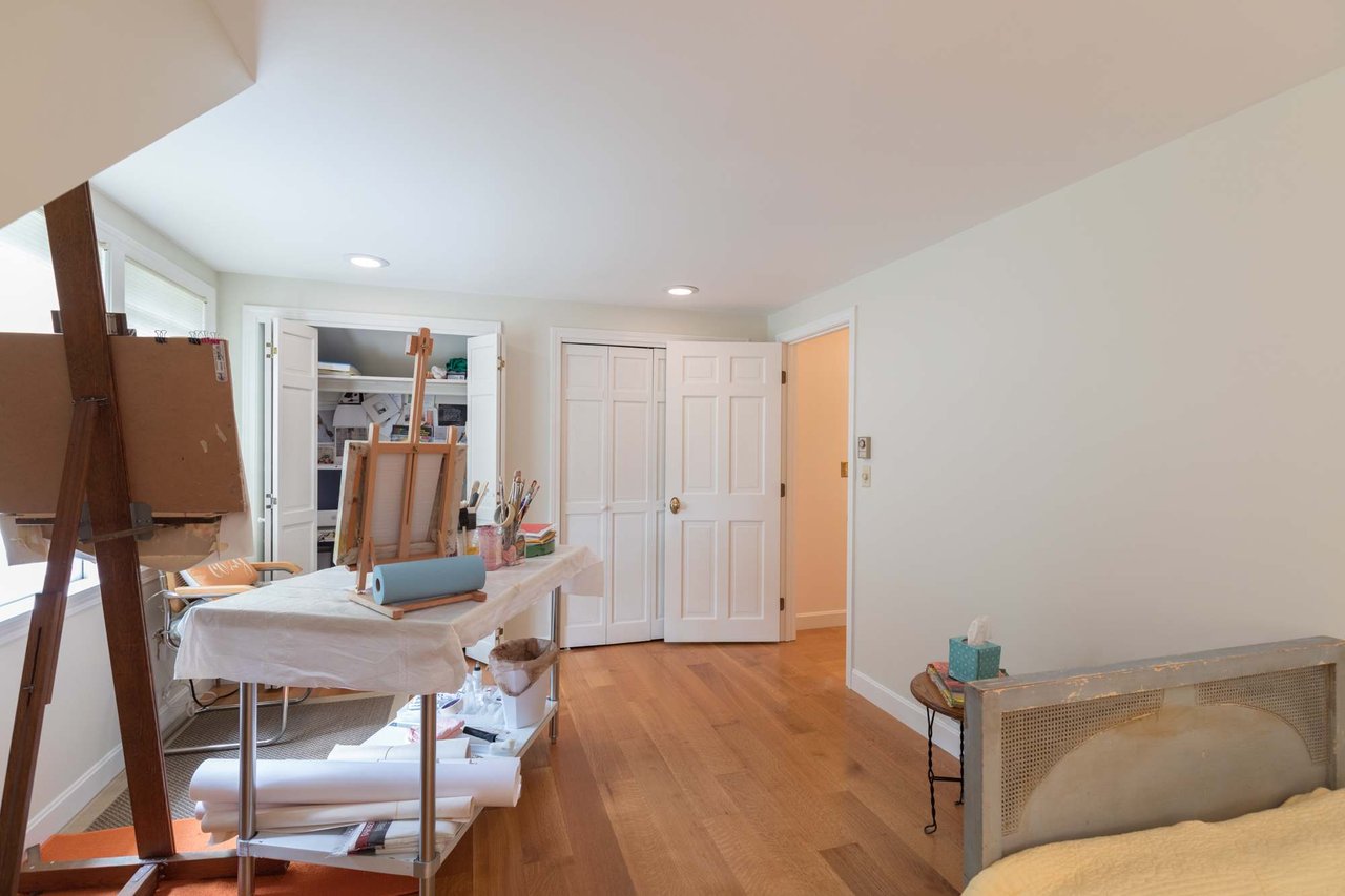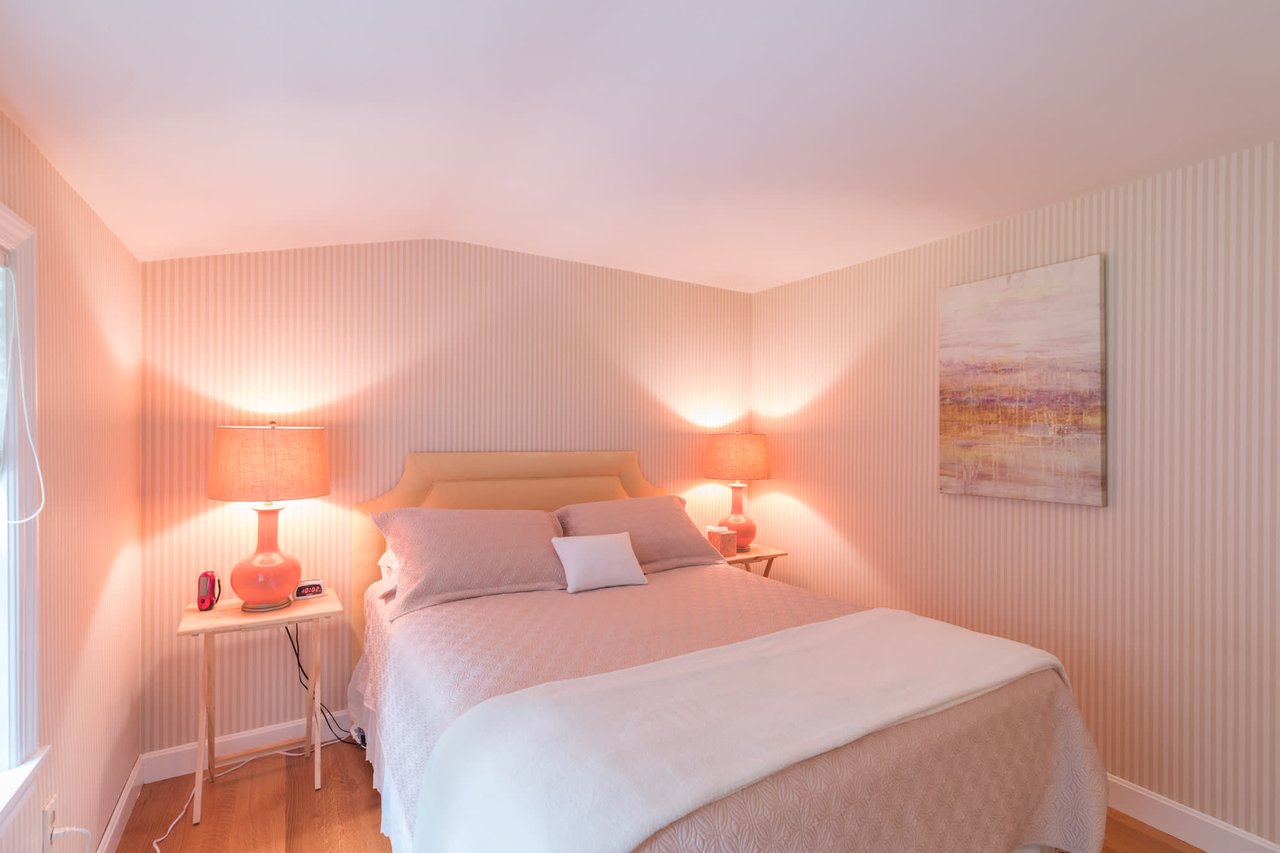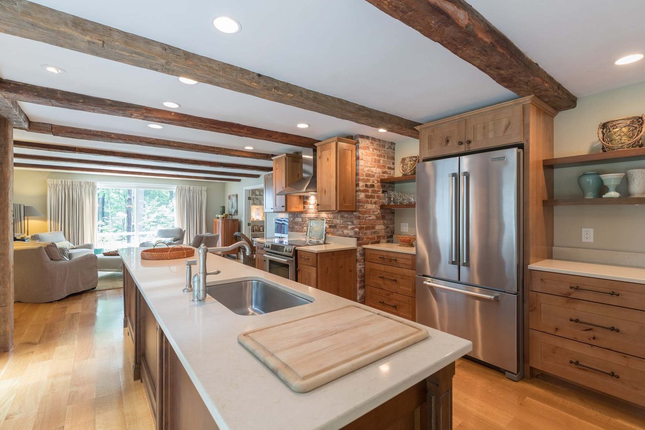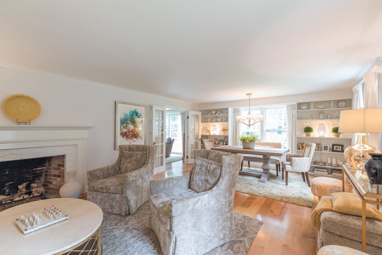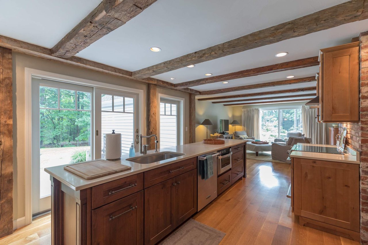 Tucked beneath the tall pines on Cumberland Foreside this timeless Cape Cod style home offers deeded access to Casco Bay and open concept living with hardwood floors throughout. Inside you will find a beautifully renovated eat-in kitchen by M.R. Brewer featuring a spacious island, charming exposed brick and French doors to the stone patio, a living room with built-ins and gas fireplace. This home offers easy one level living with a lovely master suite with custom built-ins and a full bath.