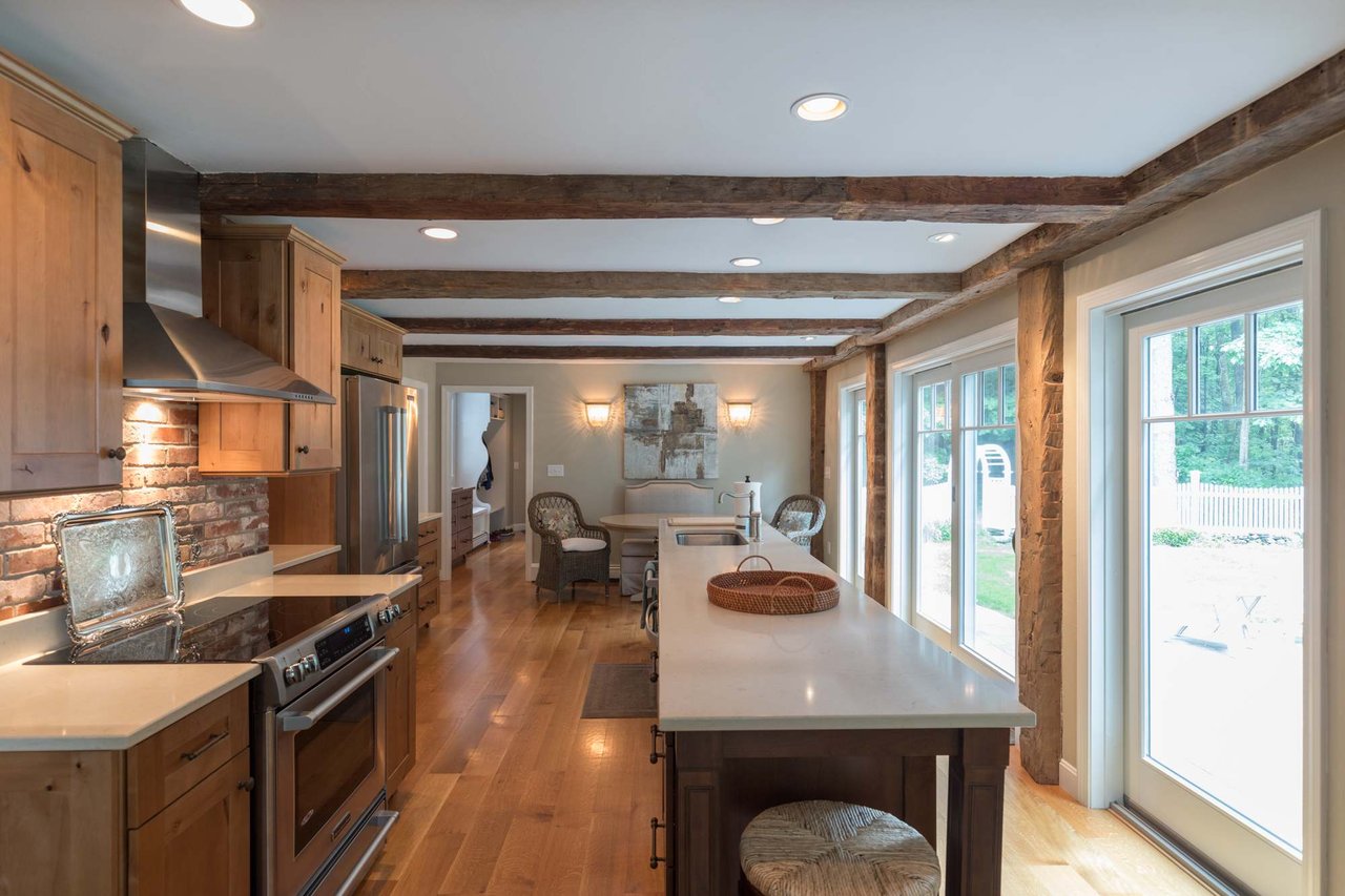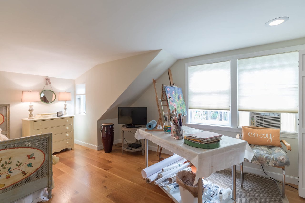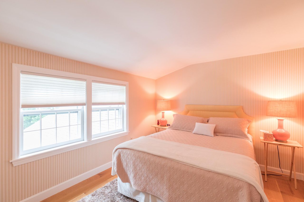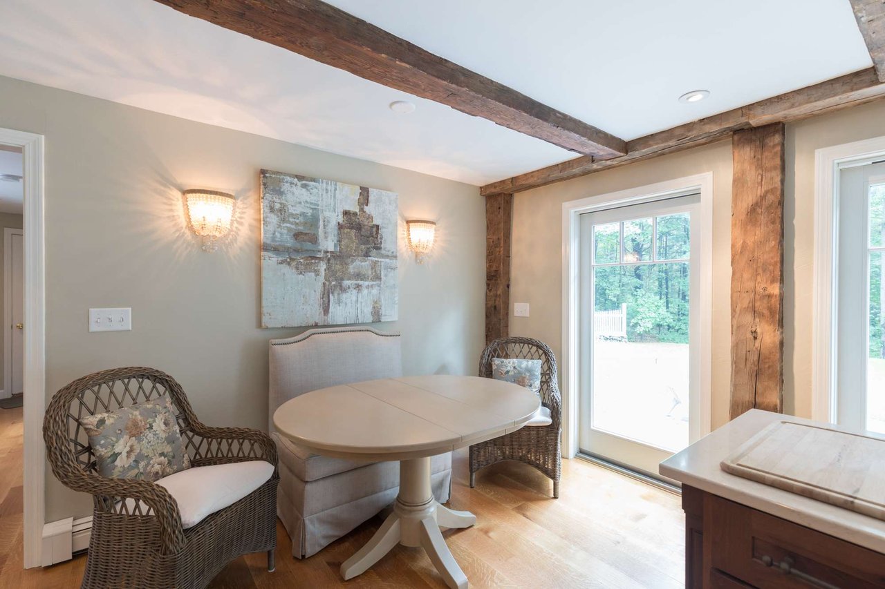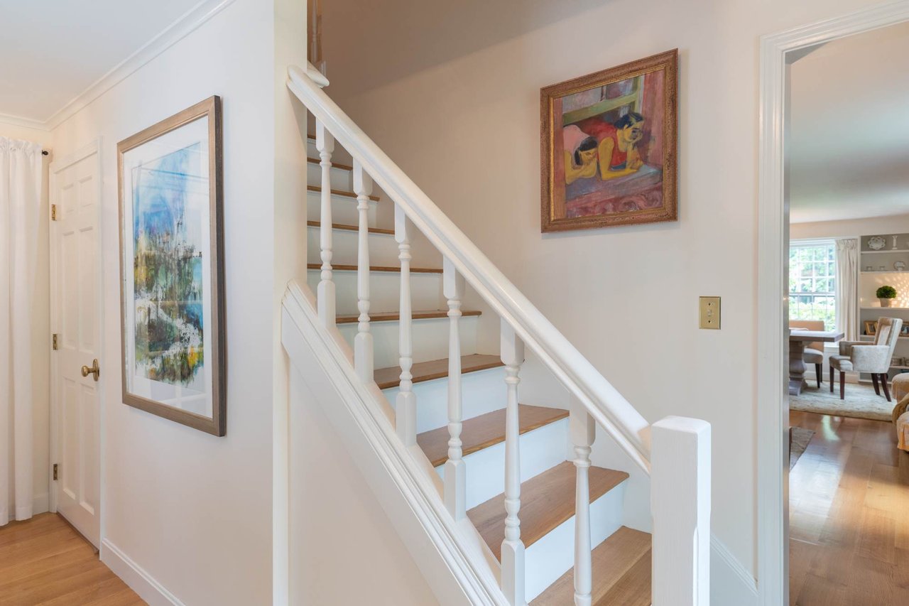 Tucked beneath the tall pines on Cumberland Foreside this timeless Cape Cod style home offers deeded access to Casco Bay and open concept living with hardwood floors throughout. Inside you will find a beautifully renovated eat-in kitchen by M.R. Brewer featuring a spacious island, charming exposed brick and French doors to the stone patio, a living room with built-ins and gas fireplace. This home offers easy one level living with a lovely master suite with custom built-ins and a full bath.