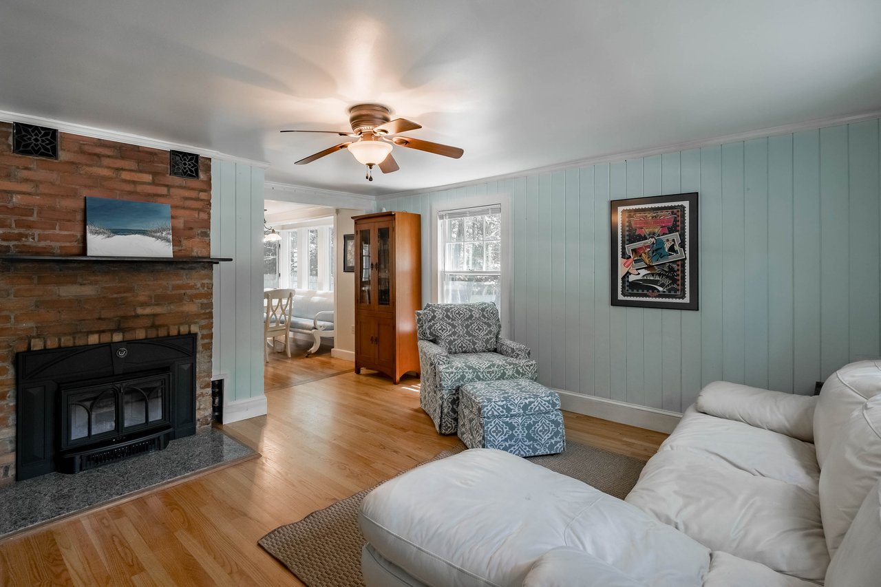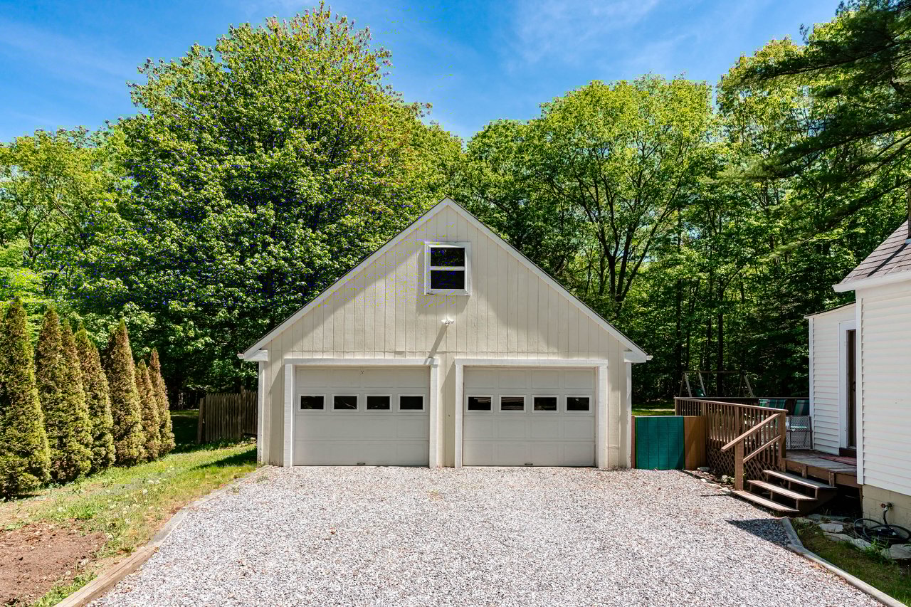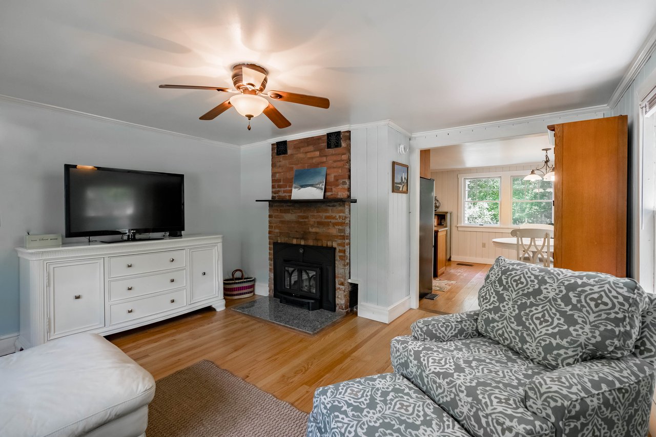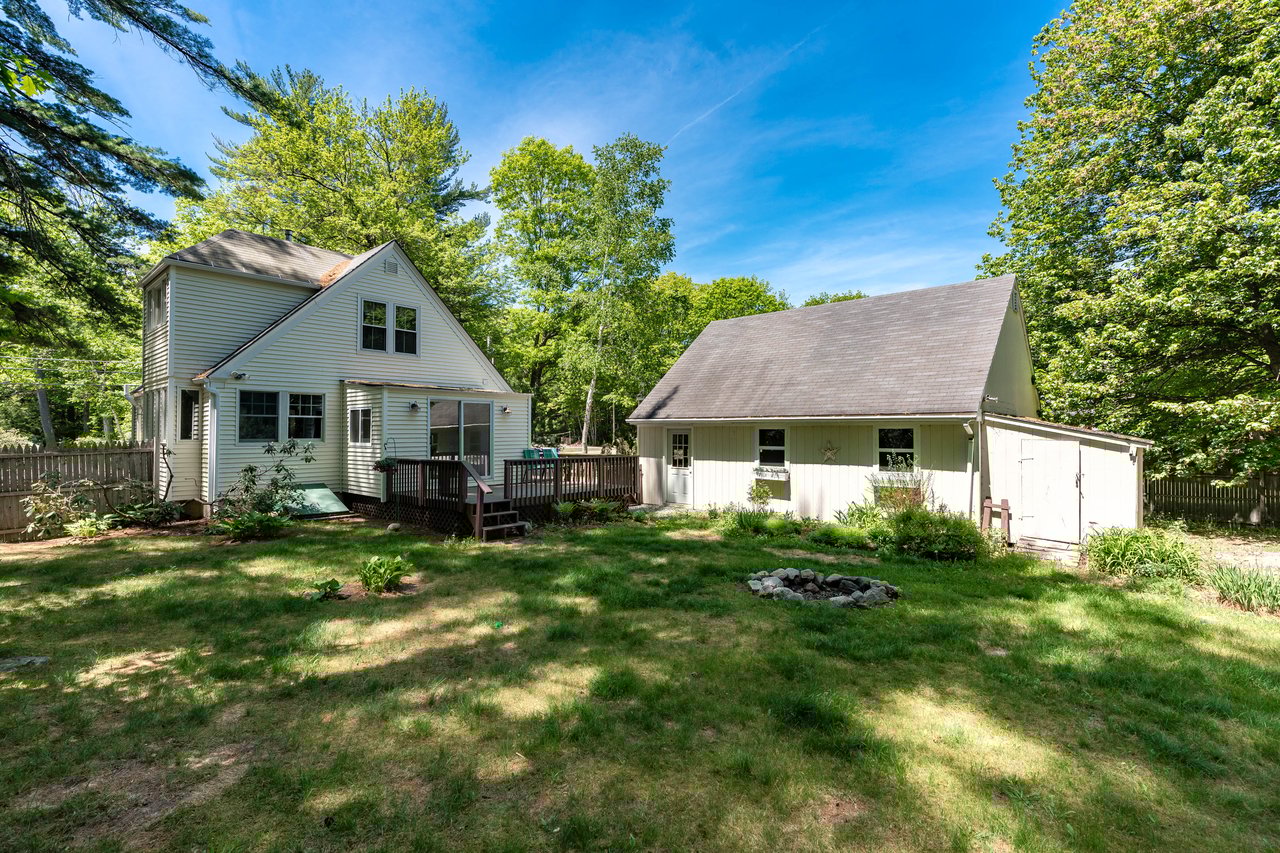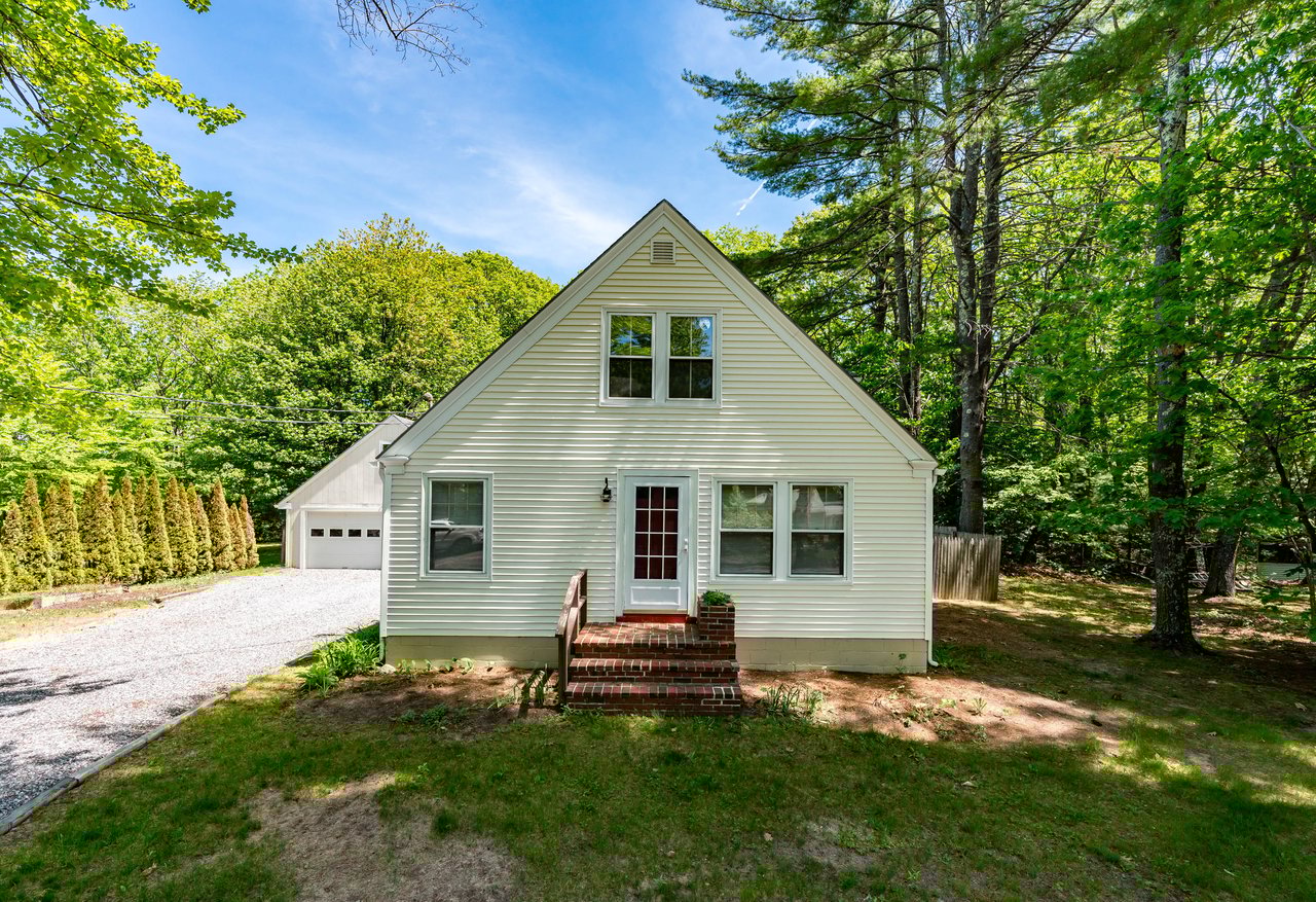 Set on nearly half an acre, this cozy three bedroom home features hardwood floors throughout the first floor, a charming eat-in kitchen with stainless steel appliances, a sunny dining area with expansive windows allowing for plenty of natural light, and a living room with fireplace. An flex room on the first floor allows for one level living or three bedrooms on the second level. The private back yard is surrounded by tall pines and fencing. Updated electrically and light fixtures throughout! Enjoy living in this peaceful setting just minutes from Highland Lake and nature trails all while being just 20 minutes from downtown Portland!