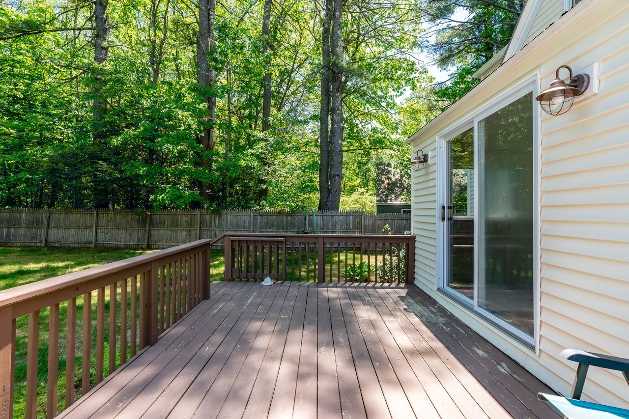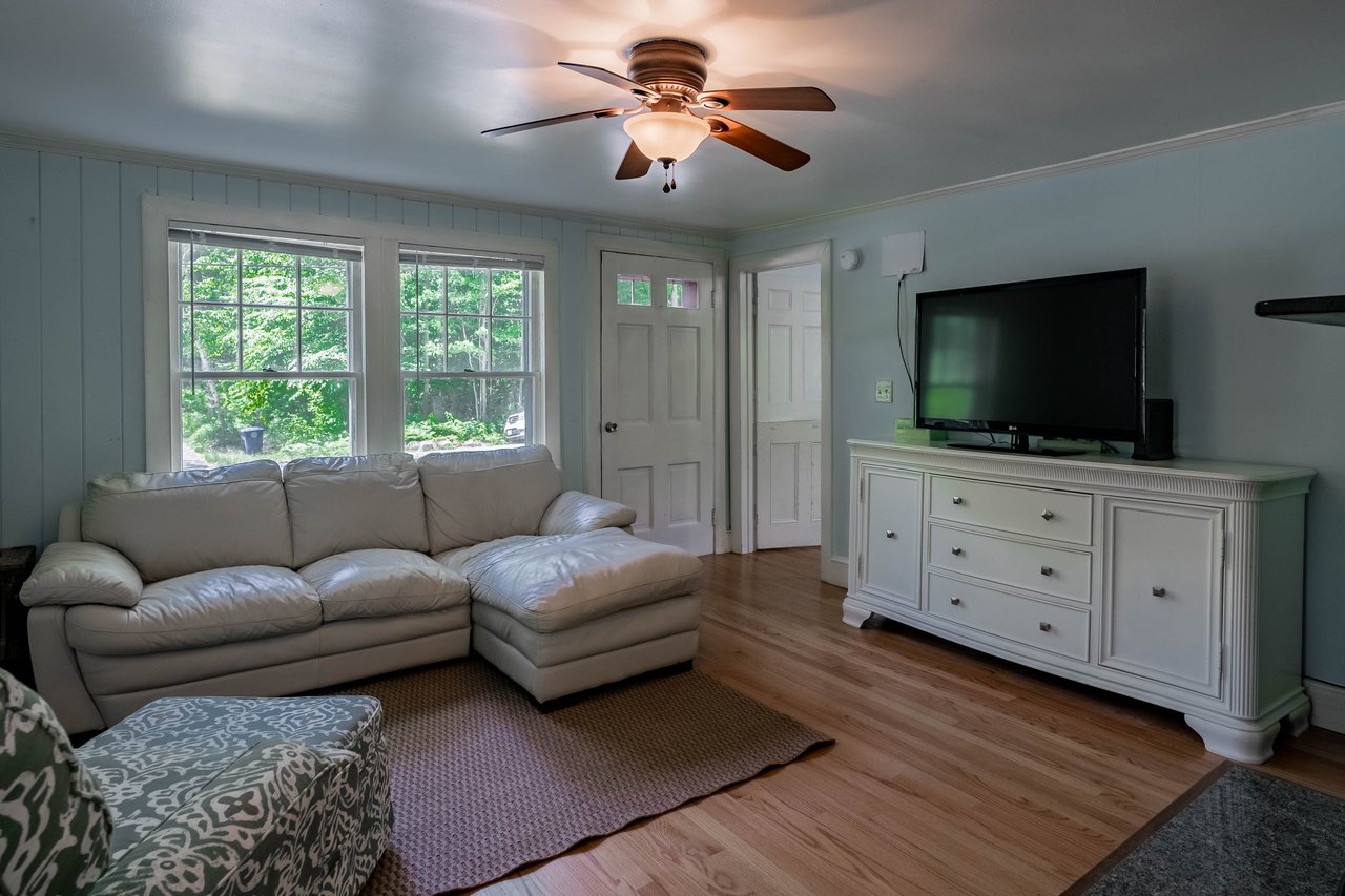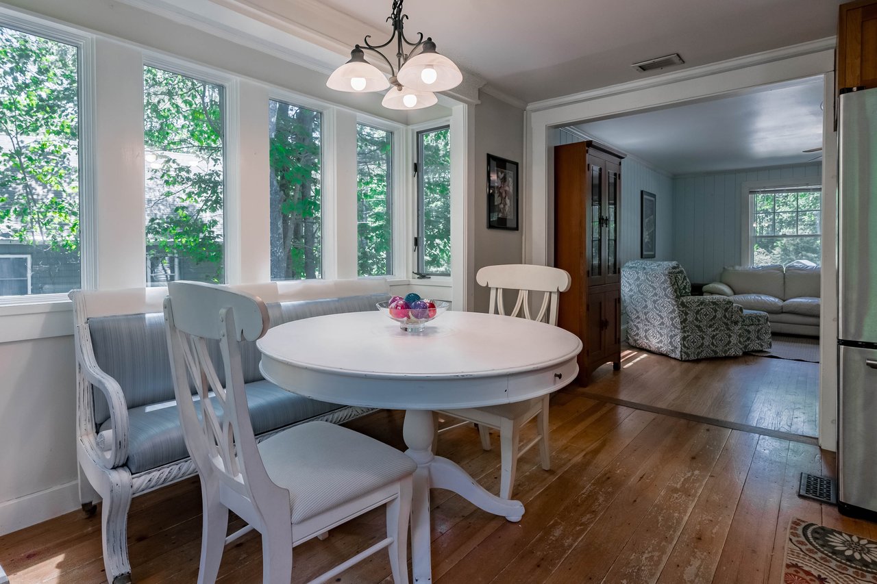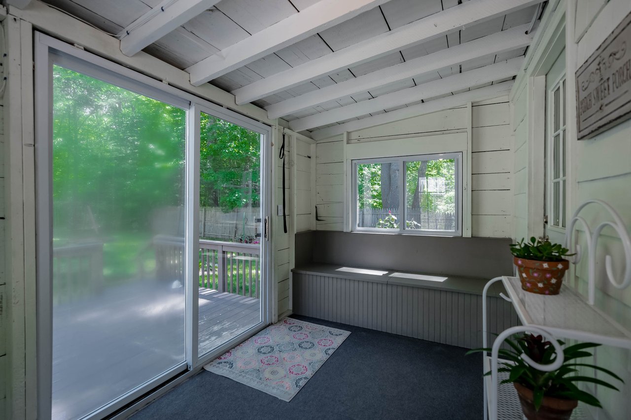 Set on nearly half an acre, this cozy three bedroom home features hardwood floors throughout the first floor, a charming eat-in kitchen with stainless steel appliances, a sunny dining area with expansive windows allowing for plenty of natural light, and a living room with fireplace. An flex room on the first floor allows for one level living or three bedrooms on the second level. The private back yard is surrounded by tall pines and fencing. Updated electrically and light fixtures throughout! Enjoy living in this peaceful setting just minutes from Highland Lake and nature trails all while being just 20 minutes from downtown Portland!