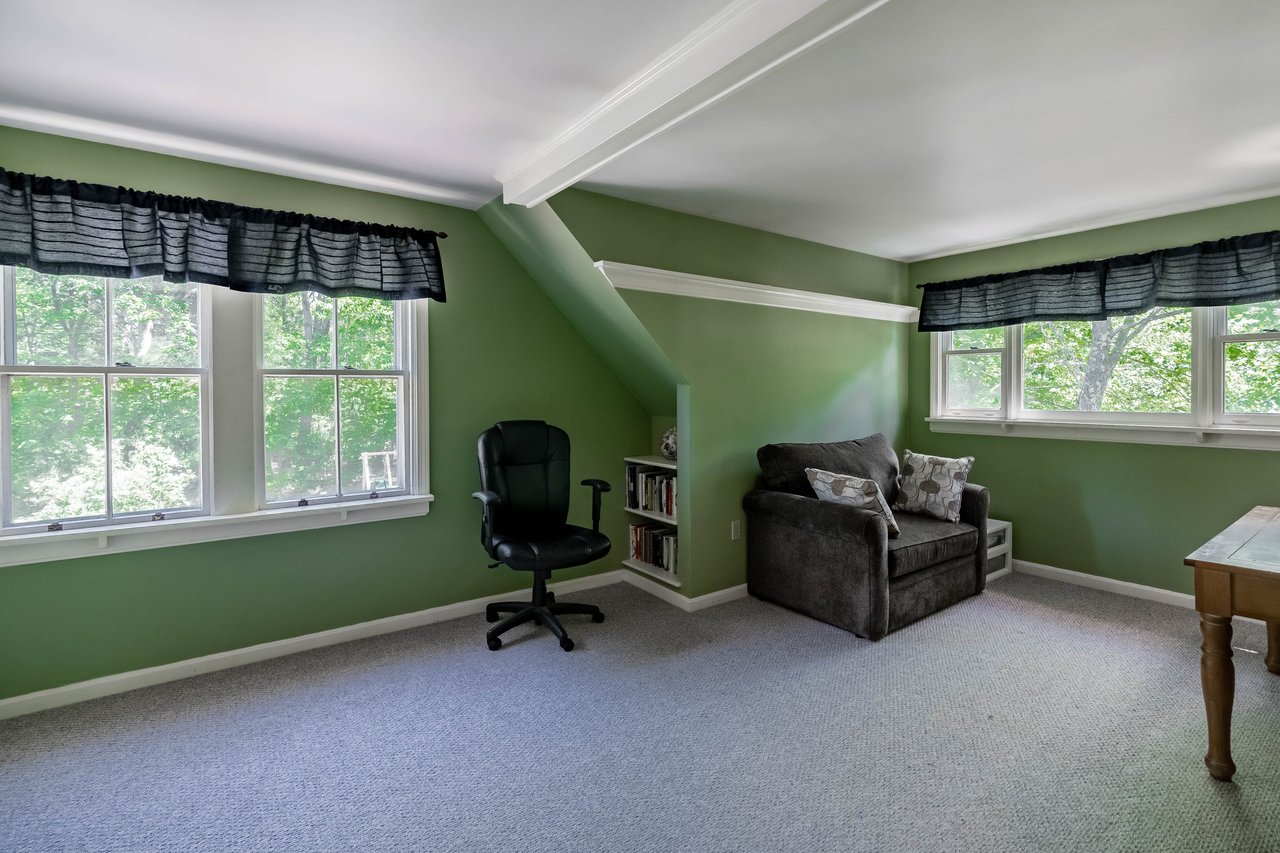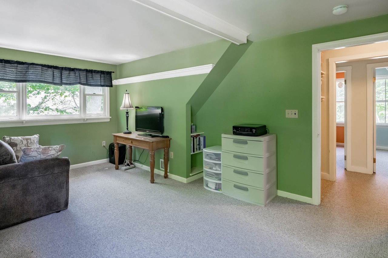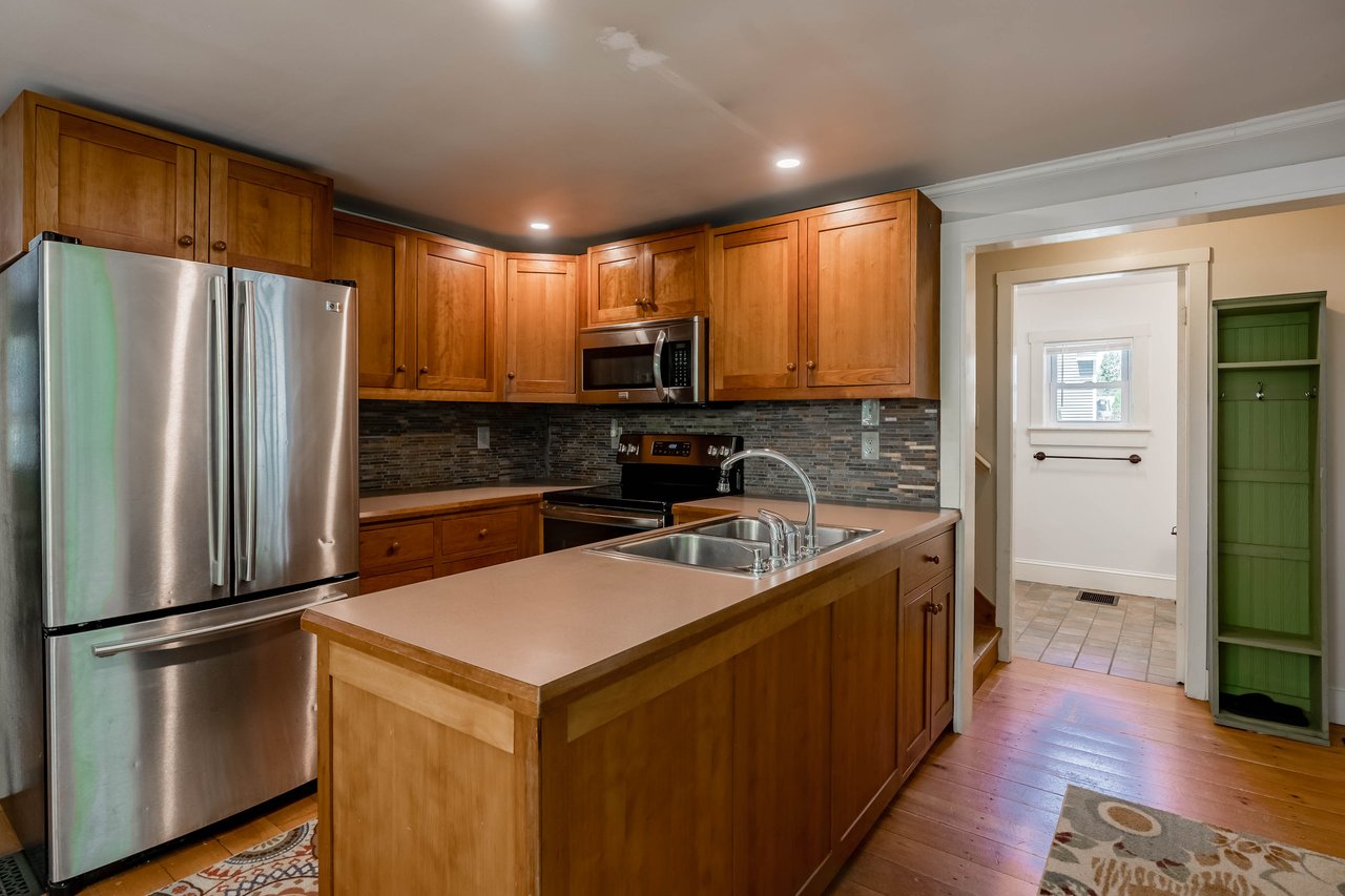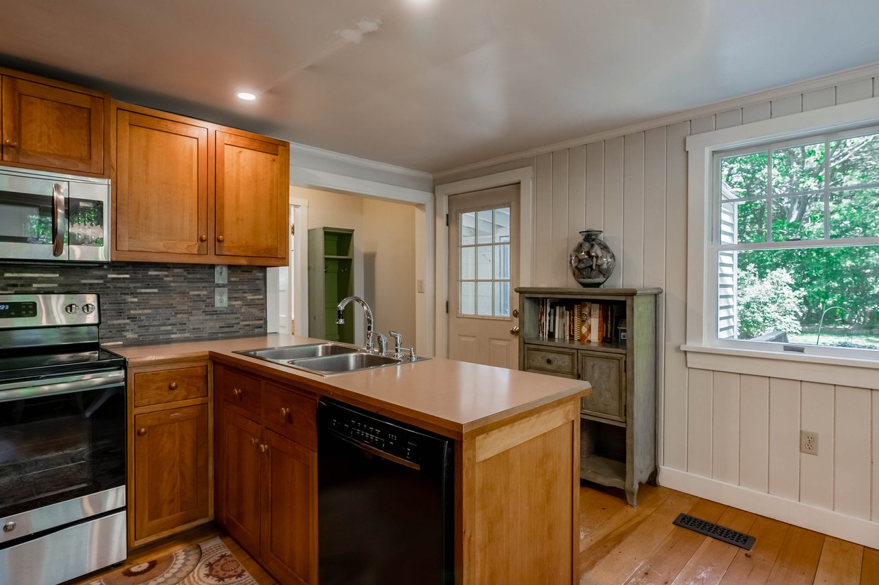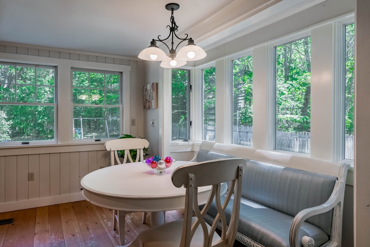 Set on nearly half an acre, this cozy three bedroom home features hardwood floors throughout the first floor, a charming eat-in kitchen with stainless steel appliances, a sunny dining area with expansive windows allowing for plenty of natural light, and a living room with fireplace. An flex room on the first floor allows for one level living or three bedrooms on the second level. The private back yard is surrounded by tall pines and fencing. Updated electrically and light fixtures throughout! Enjoy living in this peaceful setting just minutes from Highland Lake and nature trails all while being just 20 minutes from downtown Portland!
