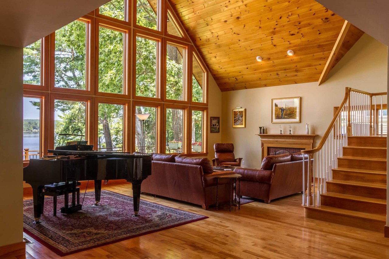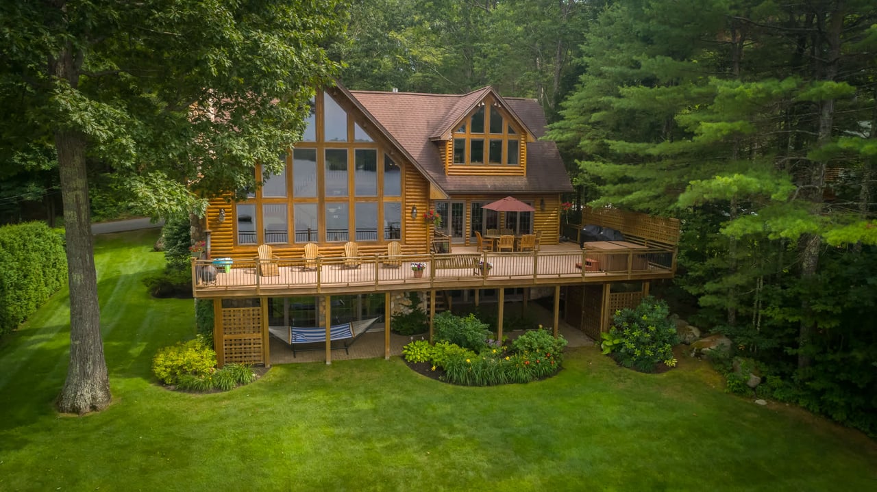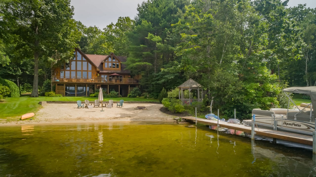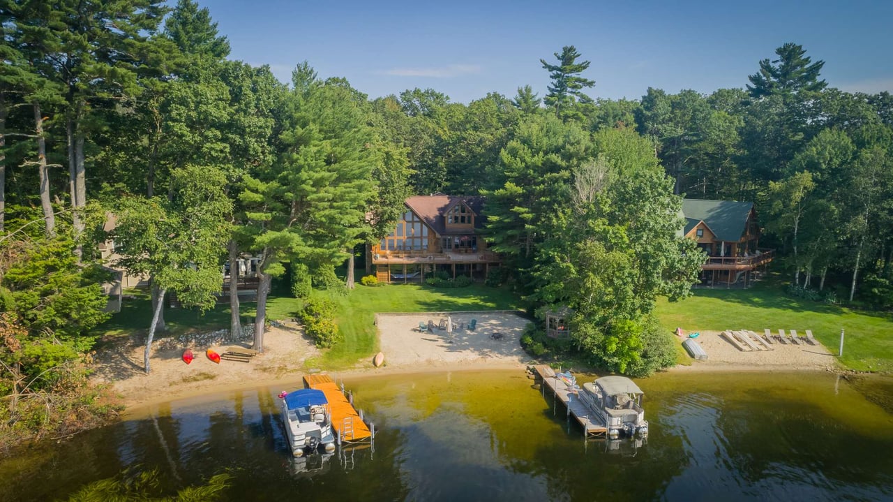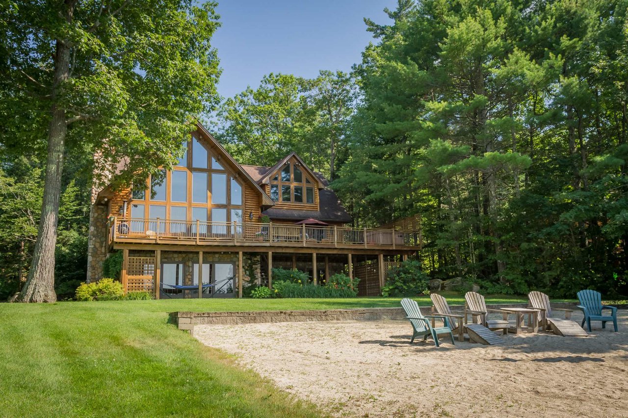 Relax and rejuvenate at this peaceful lakeside retreat! The soaring great room windows highlight the western exposure & illuminate the hardwood floors throughout the first level. The gourmet kitchen features a lovely island with granite counters overlooking the water. The 2nd level offers a master suite with walk-in closet, full bath & fireplace and 3 additional bedrooms. Outside, the spacious deck is perfect for entertaining or relaxing while overlooking 75 feet of sandy beach frontage!