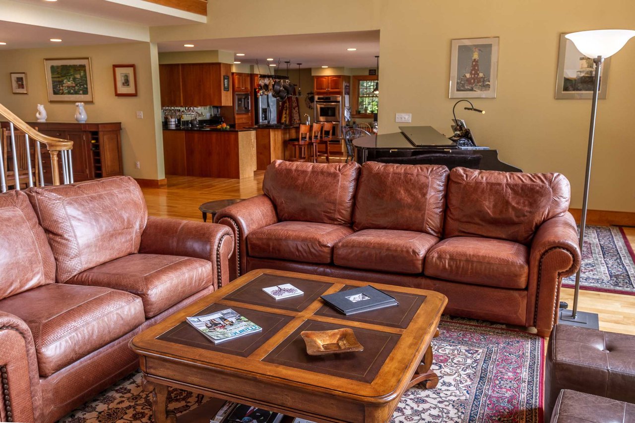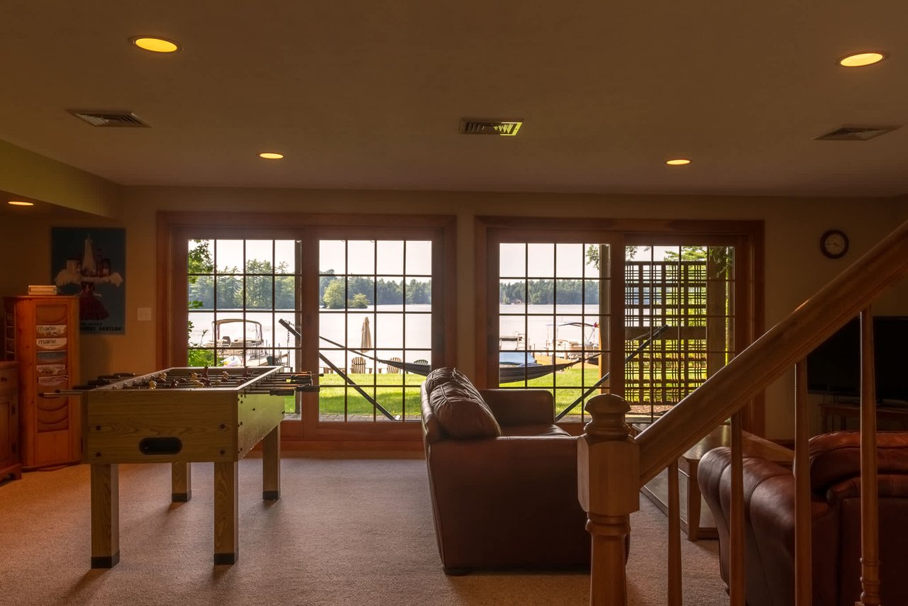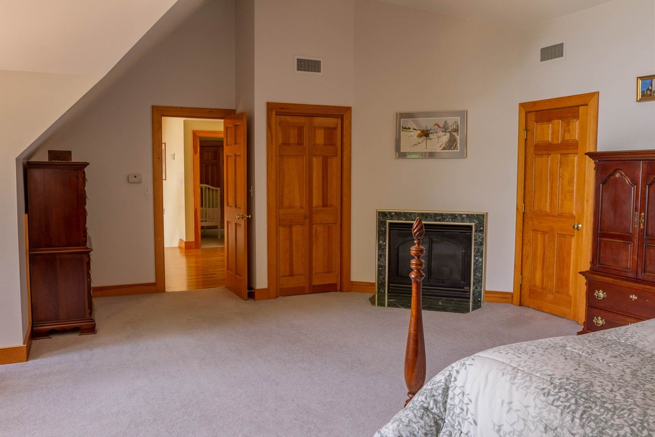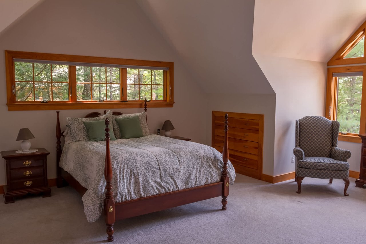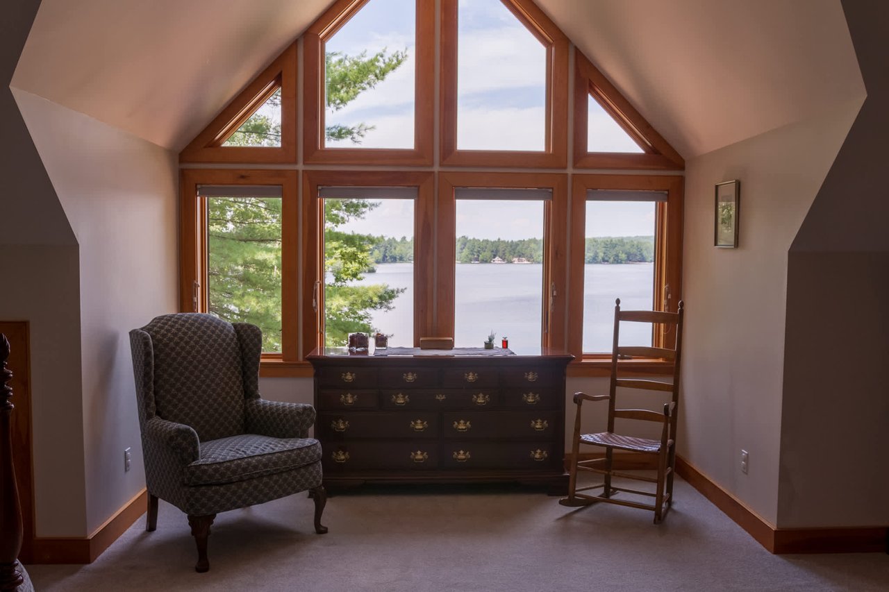 Relax and rejuvenate at this peaceful lakeside retreat! The soaring great room windows highlight the western exposure & illuminate the hardwood floors throughout the first level. The gourmet kitchen features a lovely island with granite counters overlooking the water. The 2nd level offers a master suite with walk-in closet, full bath & fireplace and 3 additional bedrooms. Outside, the spacious deck is perfect for entertaining or relaxing while overlooking 75 feet of sandy beach frontage!