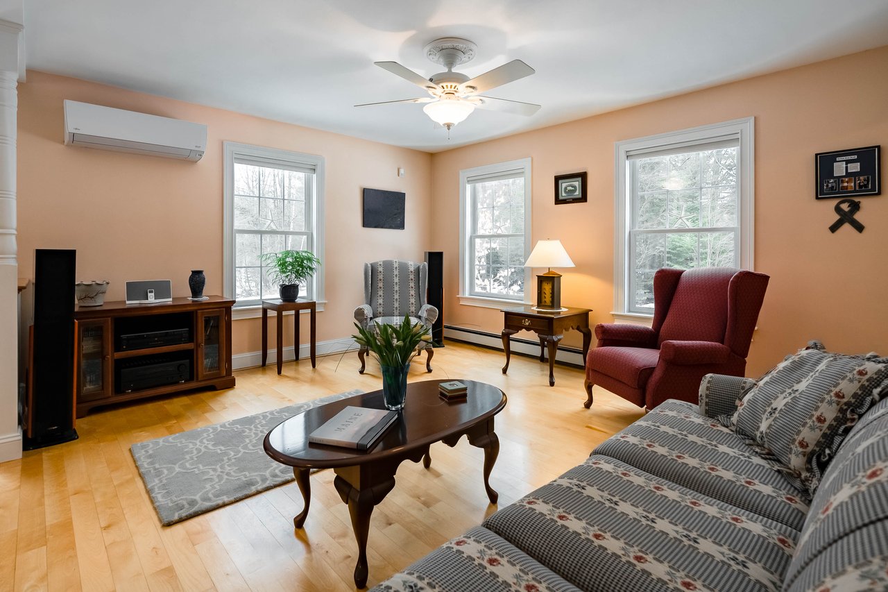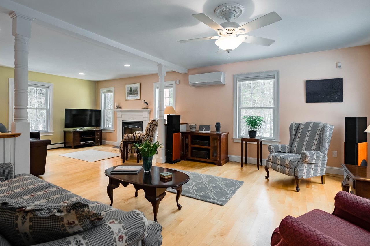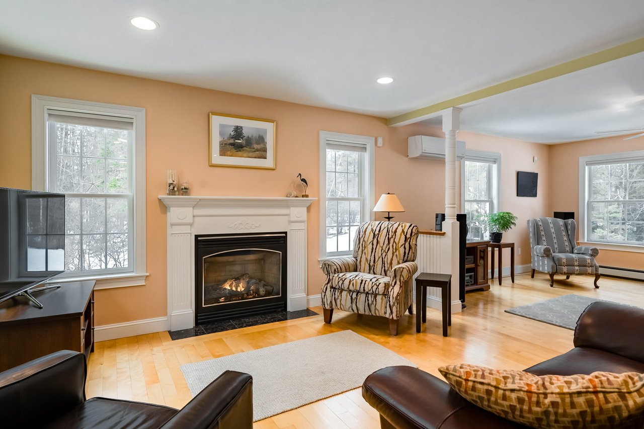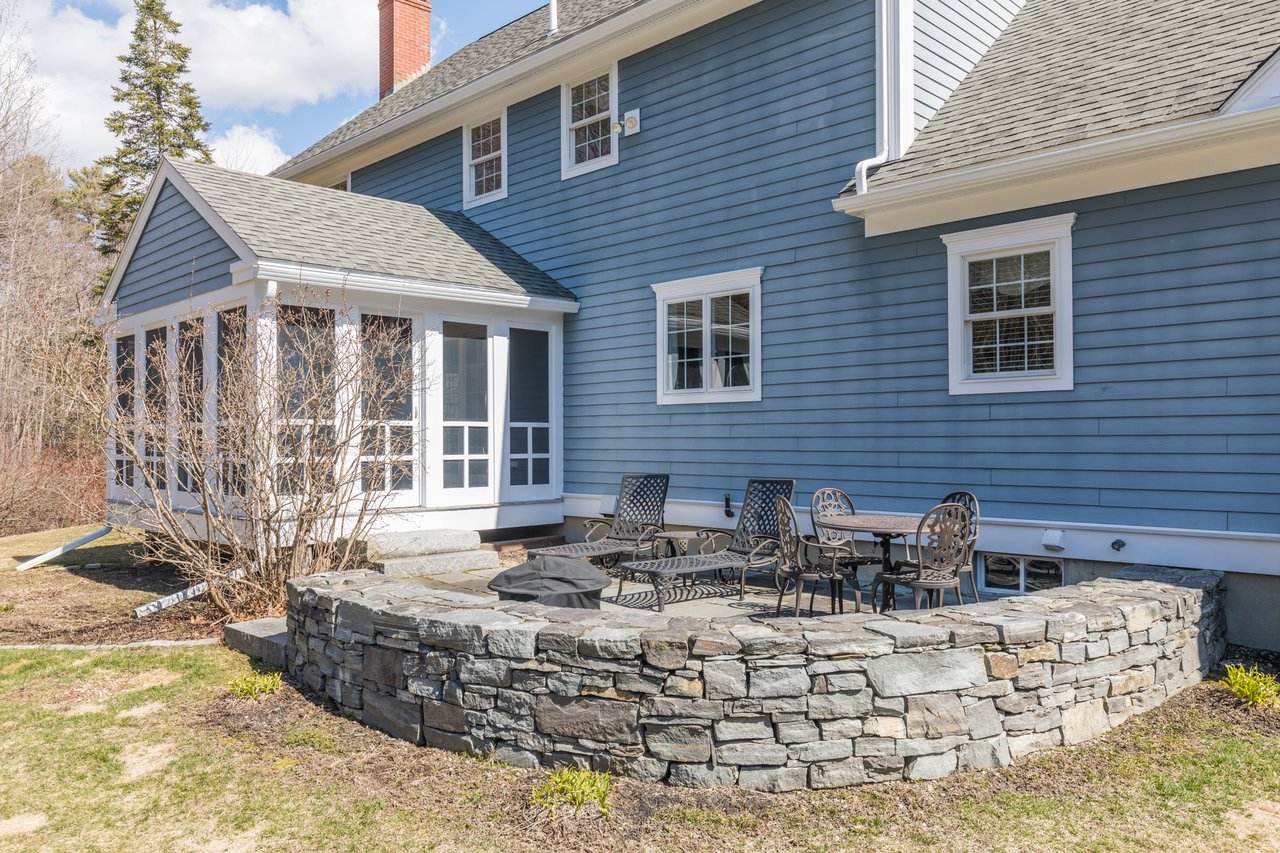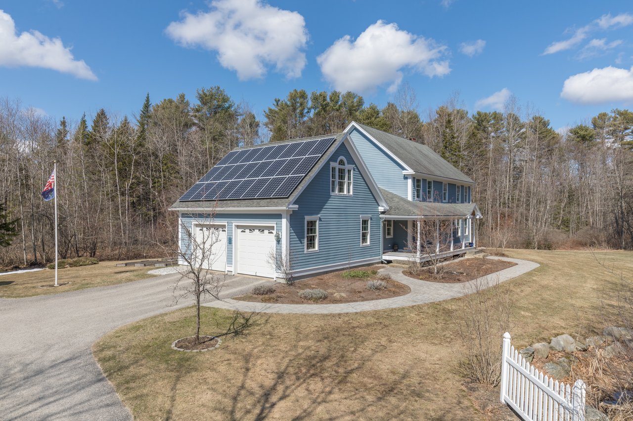 Set among the tall pines, this home rests on nearly 3.5 acres. Light hardwood floors stretch through out the first floor. The open concept kitchen features a spacious island, breakfast nook, and access to the screen porch overlooking the private back yard. The master suite features a beautiful walk-in shower, soaking tub, and dressing room. Enjoy very low maintenance costs with composite siding, efficient heats pumps for cooling and heating, and solar panels to help with your monthly bills. This amazing location allows for easy access to all sorts of local stores such as Bow Street Market, shopping, and local restaurants in both Freeport and Yarmouth, all while being just minutes from I-295 and under 20 minutes to downtown Portland!