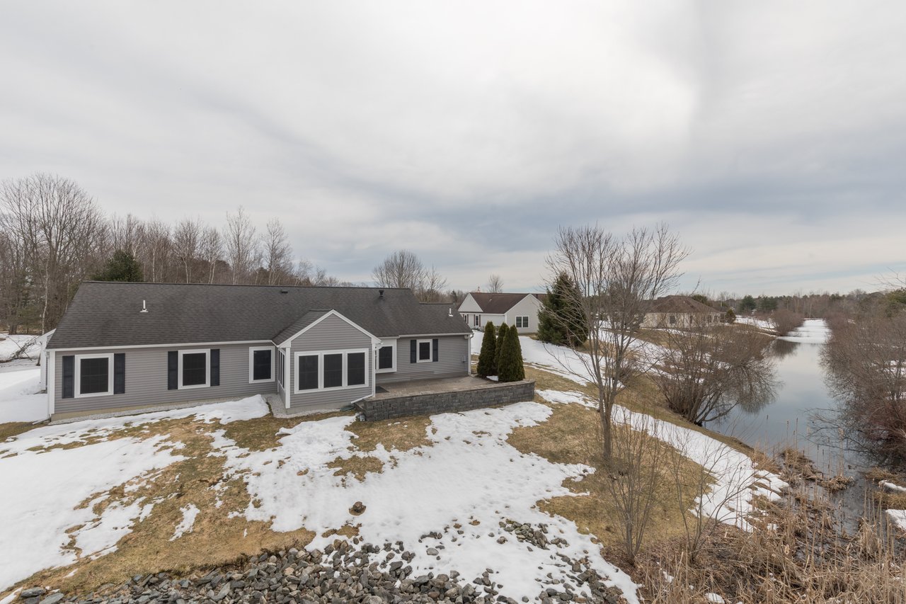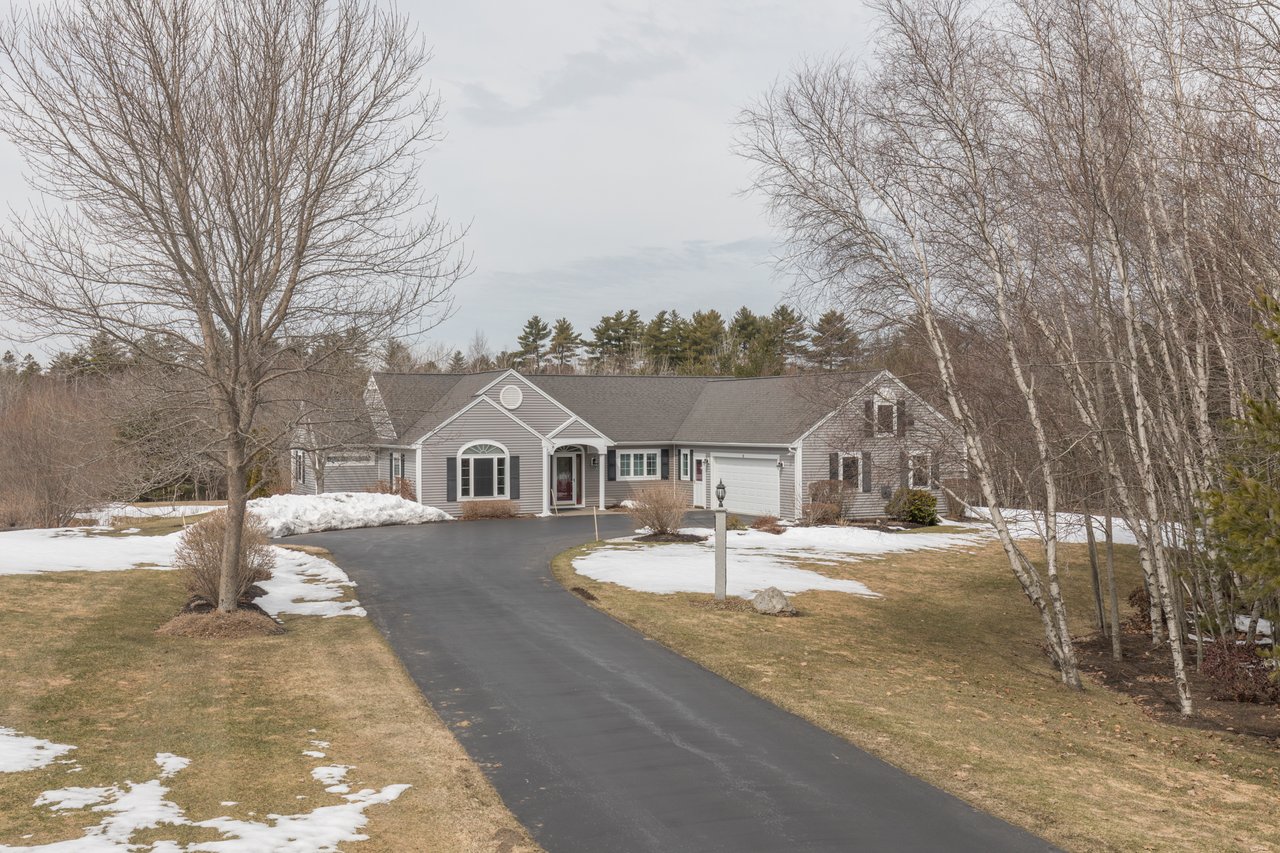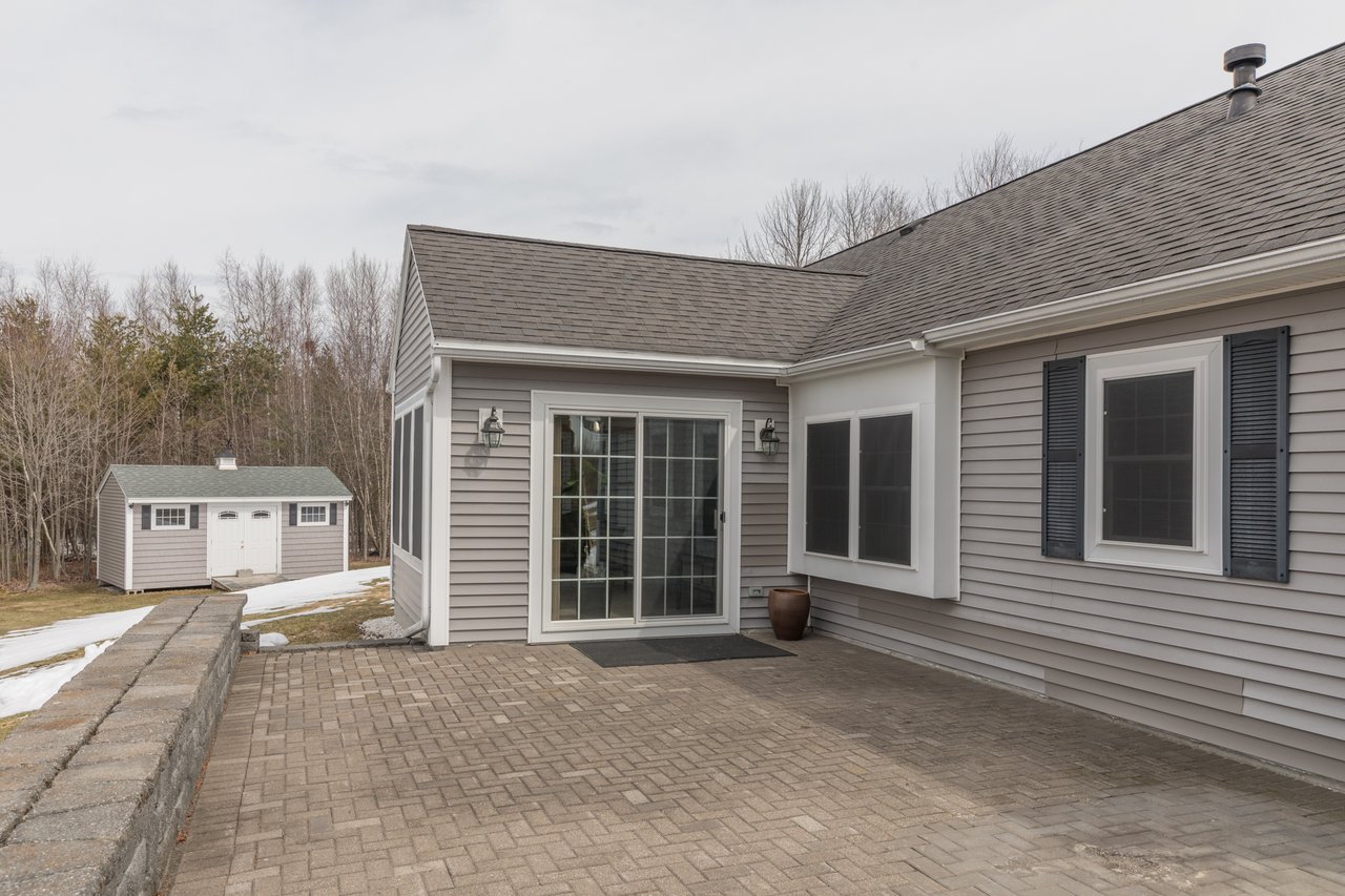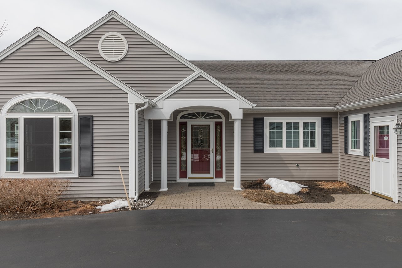 Serenely set back from the road on nearly an acre, this beautiful home features easy one level living with 3 bedroom and 2 full baths. The interior has a gracious open concept living space with cathedral ceilings, radiant heat and engineered hardwood floors, a living room with charming built-ins and gas fireplace, a kitchen with granite counters and stainless steel appliances, a sunny master suite with walk-in closet and full bath. The four season sun room makes a wonderful place to relax with sliders to the back patio overlooking the peaceful back yard. This home has plenty of extra storage with a large shed and bonus room above the two car garage. Enjoy low monthly association fees while not having to worry about shoveling, plowing or lawn maintenance. The convenient location is just minutes from restaurants, local schools and Route 1 amenities!