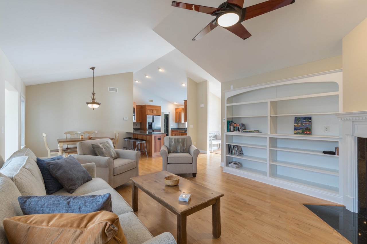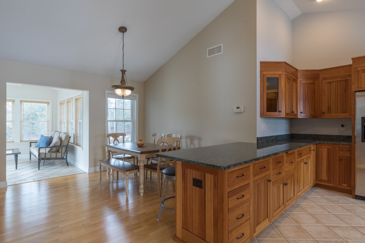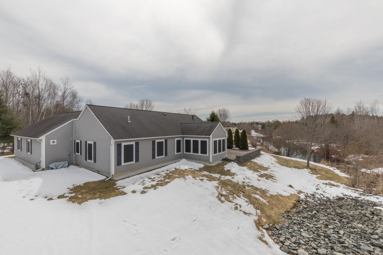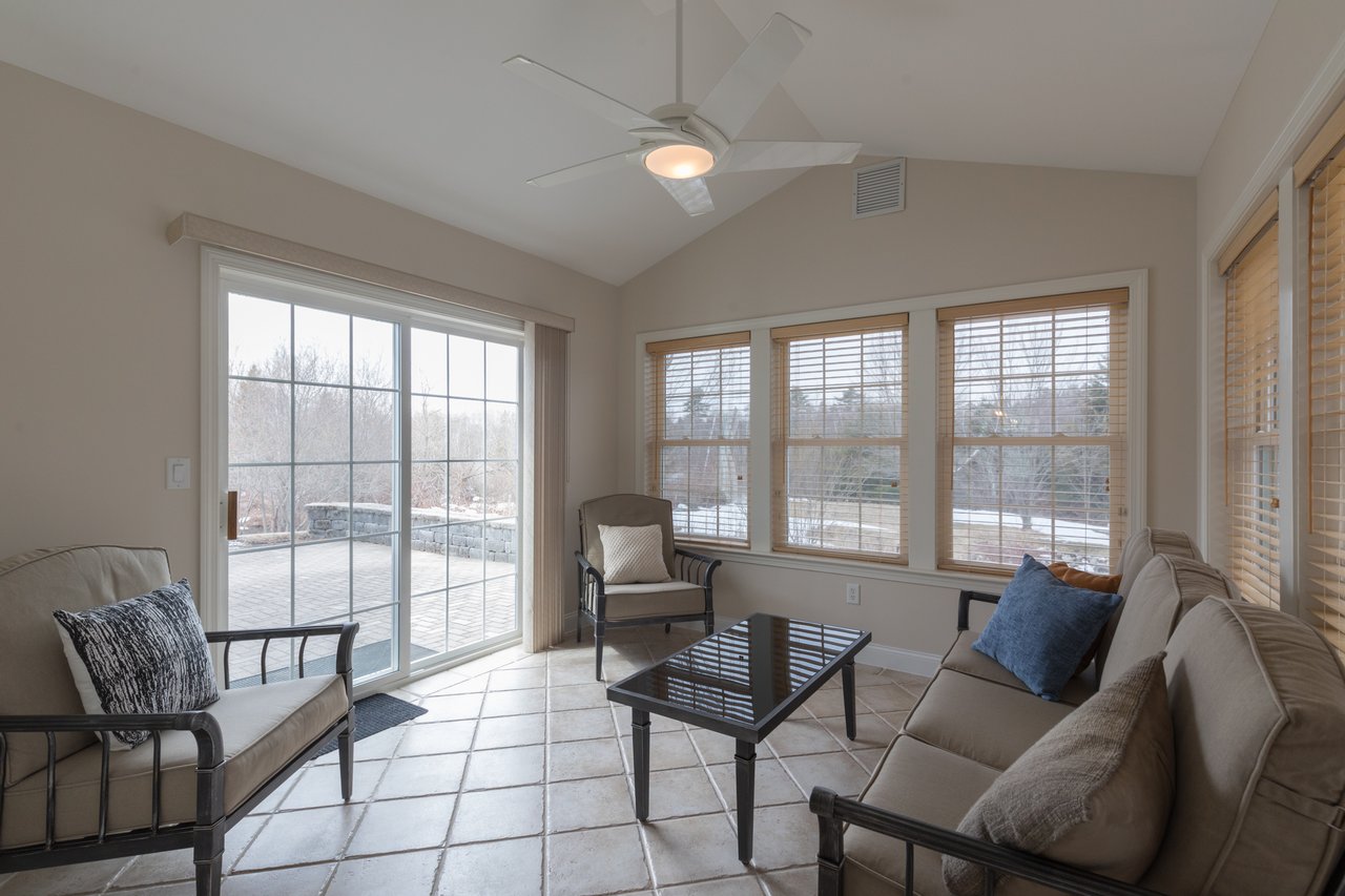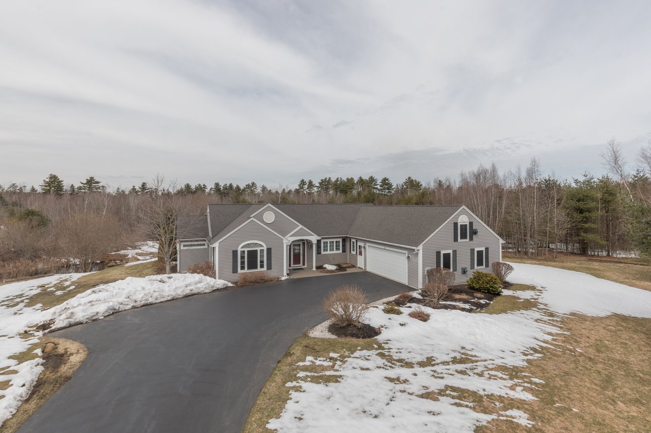 Serenely set back from the road on nearly an acre, this beautiful home features easy one level living with 3 bedroom and 2 full baths. The interior has a gracious open concept living space with cathedral ceilings, radiant heat and engineered hardwood floors, a living room with charming built-ins and gas fireplace, a kitchen with granite counters and stainless steel appliances, a sunny master suite with walk-in closet and full bath. The four season sun room makes a wonderful place to relax with sliders to the back patio overlooking the peaceful back yard. This home has plenty of extra storage with a large shed and bonus room above the two car garage. Enjoy low monthly association fees while not having to worry about shoveling, plowing or lawn maintenance. The convenient location is just minutes from restaurants, local schools and Route 1 amenities!