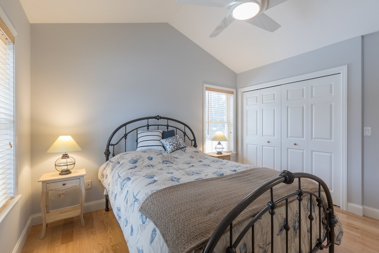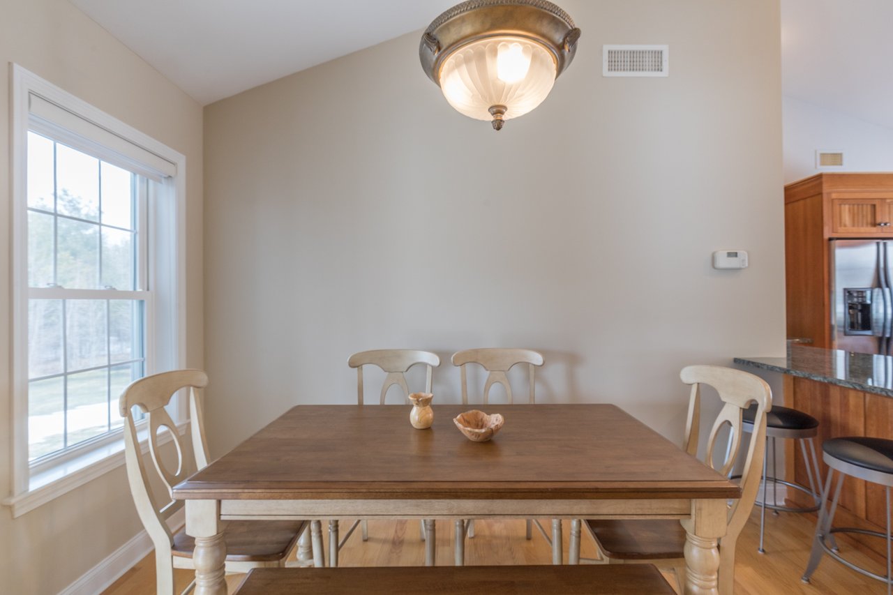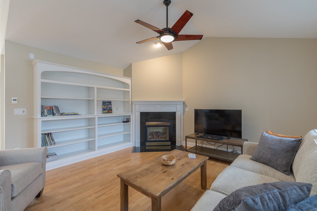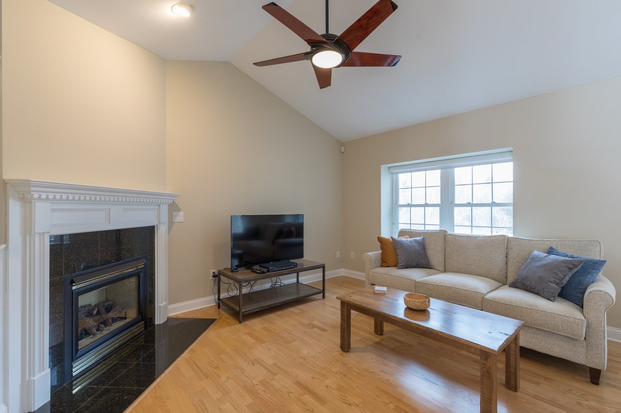 Serenely set back from the road on nearly an acre, this beautiful home features easy one level living with 3 bedroom and 2 full baths. The interior has a gracious open concept living space with cathedral ceilings, radiant heat and engineered hardwood floors, a living room with charming built-ins and gas fireplace, a kitchen with granite counters and stainless steel appliances, a sunny master suite with walk-in closet and full bath. The four season sun room makes a wonderful place to relax with sliders to the back patio overlooking the peaceful back yard. This home has plenty of extra storage with a large shed and bonus room above the two car garage. Enjoy low monthly association fees while not having to worry about shoveling, plowing or lawn maintenance. The convenient location is just minutes from restaurants, local schools and Route 1 amenities!